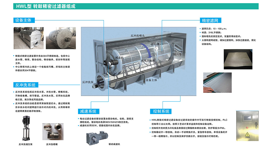 HWL型轉(zhuǎn)鼓精密過(guò)濾器工作原理